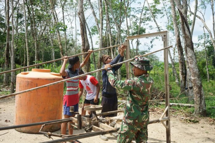 OKI — Upaya mengatasi kesulitan air bersih bagi masyarakat terus dilakukan oleh Satgas TMMD Kodim 0402/OKI. Melalui program TNI Manunggal Membangun Desa (TMMD), pembangunan satu unit sumur bor saat ini terus dikerjakan dan telah mencapai progres sekitar 20 persen