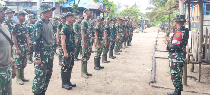 MIMIKA – Personel Satgas TMMD ke-128 Kodim 1710/Mimika rutin melaksanakan apel pagi sebelum memulai kegiatan di lokasi sasaran TMMD yang berada di Kampung Keakwa, Distrik Mimika Tengah, Rabu (29/4/2026). Kegiatan tersebut dipimpin langsung oleh Danki Satgas, Kapten Kav Bambang Rudianto, sebagai bagian dari pengendalian dan pengawasan pelaksanaan tugas di lapangan.