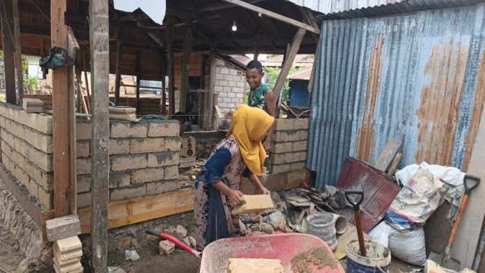 Bahu-Membahu, Ibu Ninda Turut Serta Percepat Pembangunan Rumah dalam Program TMMD 127