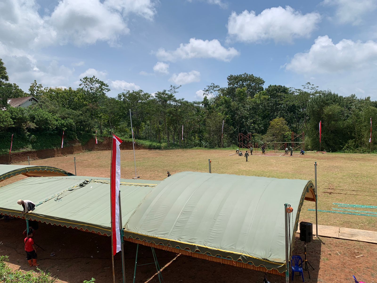 “Berbagai persiapan hari ini kita laksnakan diantaran pemasangan Baliho, umbul-umbul, panggung, penataan meja dan kursi tamu, display dan sebagainya, anggota Satgas juga turut membantu melaksanakn bersih-bersih di lokasi, hal-hal yang perlu sudah disiapkan matang dan sudah dikoordinasikan dengan instansi terkait, serta masyarakat setempat untuk acara besok,” terang Peltu Among selaku Bati Bhakti TNI.(Pendim 0728)