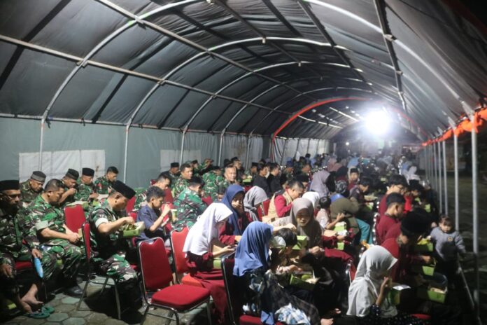 Setelah sambutan, dilaksanakan penyerahan piagam penghargaan kepada prajurit teladan yang menunjukkan kinerja luar biasa selama pelaksanaan tugas. Selanjutnya dilakukan pemberian santunan kepada anak yatim piatu. Acara berlanjut dengan pemotongan tumpeng, tausiah serta do’a yang disampaikan oleh Ustadz Nia Kurnia, buka puasa bersama, shalat Maghrib berjamaah, ramah tamah, hingga diakhiri dengan shalat Isya dan shalat Tarawih berjamaah. (*)