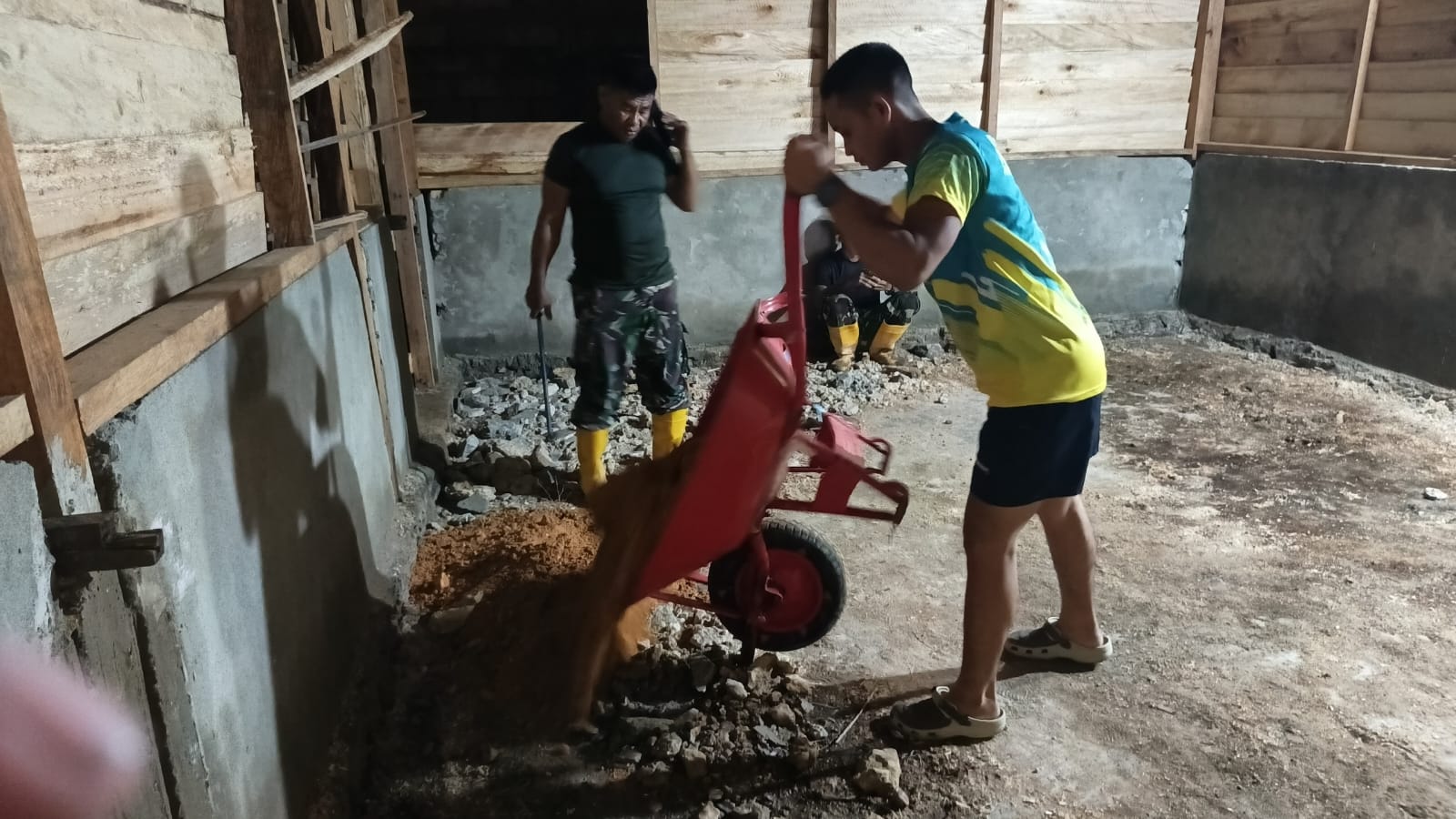 Di bawah temaram lampu dan suasana kekeluargaan yang kental, deru kerja keras seolah mengalahkan sunyinya malam demi mewujudkan hunian yang layak bagi warga yang membutuhkan.
