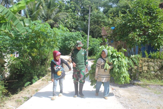 Langkah para prajurit melambat. Senyum tulus pun terulur. Di tepi jalan desa itu, percakapan sederhana mengalir hangat—tentang rutinitas mencari pakan ternak, tentang keluarga di rumah, hingga tentang harapan hidup yang lebih baik. Ibu-ibu yang semula berjalan tergesa tampak sumringah, merasa diperhatikan di tengah kerasnya perjuangan sehari-hari.