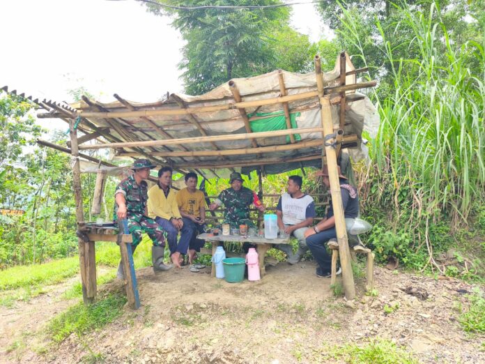 Kebumen – Komandan Kodim 0709/Kebumen, Letkol Inf Eko Majlistyawan P, tampak duduk bersama warga di sebuah gubuk sederhana di lokasi kegiatan TMMD Reguler Ke-127 Kodim 0709/Kebumen.