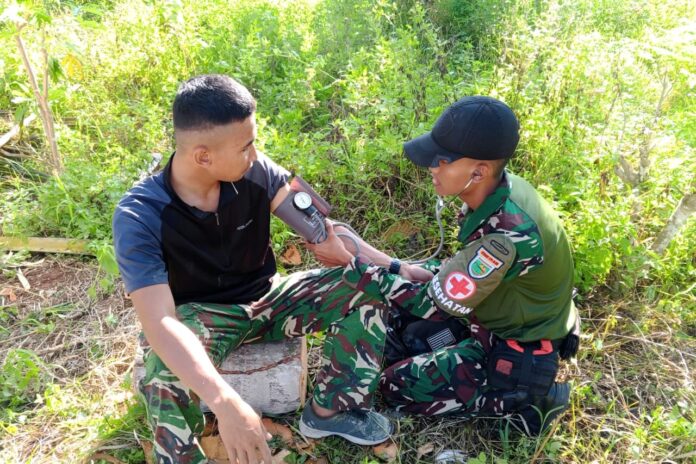 BIAK NUMFOR – Kesigapan dan kesehatan fisik menjadi syarat utama agar seluruh rangkaian kegiatan program TNI Manunggal Membangun Desa (TMMD) Ke-128 Tahun Anggaran 2026 dapat berjalan dengan lancar dan hasilnya maksimal. Menyadari hal tersebut, para anggota Satuan Tugas (Satgas) TMMD Ke-128 dari Komando Distrik Militer (Kodim) 1708/Biak Numfor melaksanakan pemeriksaan kesehatan berupa pengecekan tekanan darah atau tensi, yang dilakukan pada hari Minggu, 26 April 2026. Kegiatan ini menjadi bagian dari upaya pemantauan kondisi tubuh secara berkala, guna memastikan setiap personel senantiasa berada dalam keadaan sehat dan memiliki tenaga yang cukup untuk menyelesaikan seluruh tugas pembangunan yang telah ditargetkan.
