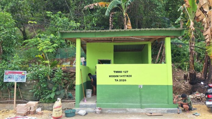 Kendari – Program TNI Manunggal Membangun Desa (TMMD) ke-127 yang dilaksanakan oleh Kodim 1417/Kendari resmi merampungkan pembangunan fasilitas Mandi, Cuci, Kakus (MCK) bagi masyarakat Kelurahan Sambuli, Rabu (11/3).