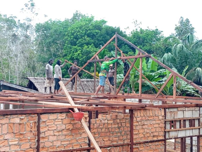 Hari ke 14, Satgas TMMD ke-127 Kodim 1704 Mappi Terus Pacu Pekerjaan Rumah Layak Huni