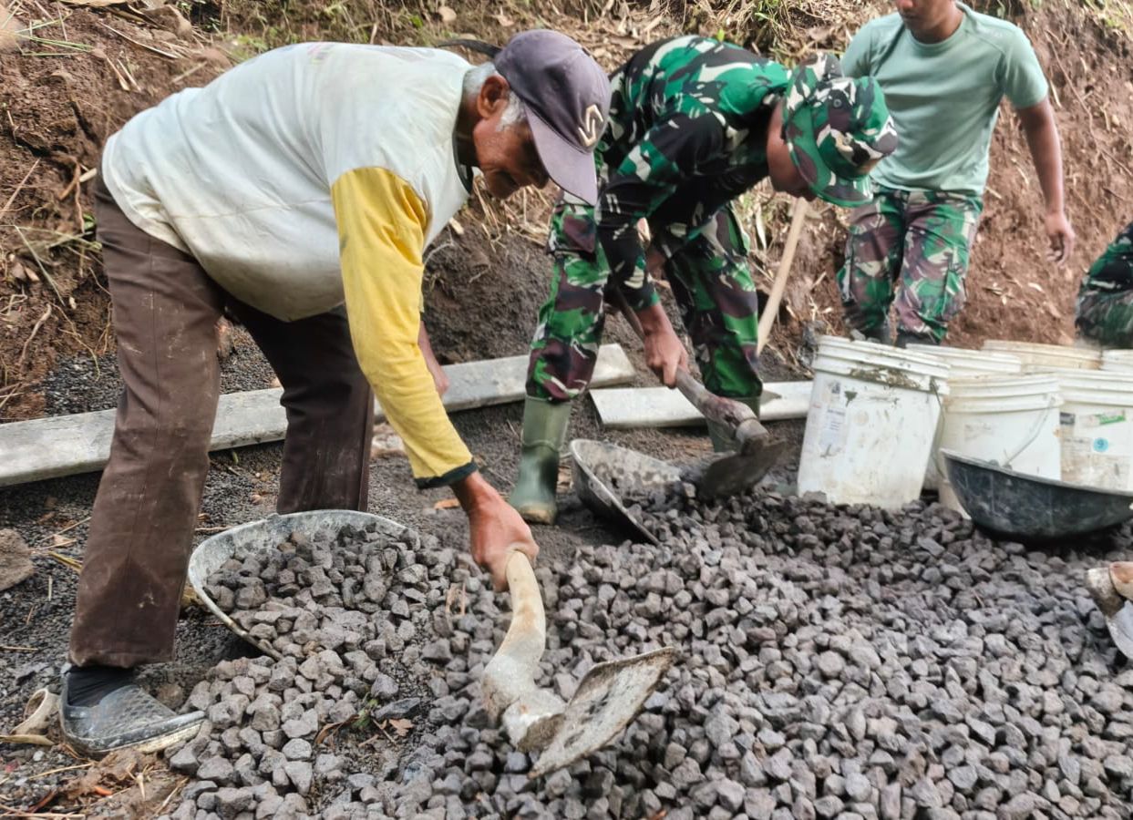 Mbah Kasidi, mengatakan, biarpun sudah tua, saya juga ingin membantu pak TNI yang bekerja membangun jalan di desa kami, katanya. “Sedikit capek tidak apa-apa besok juga sudah seger lagi, lebih lama menikmati hasil pengecoran jalan ini dari pada capek saya,”ujarnya sambil mencangkul batu koral. Sabtu (14/2/2026).