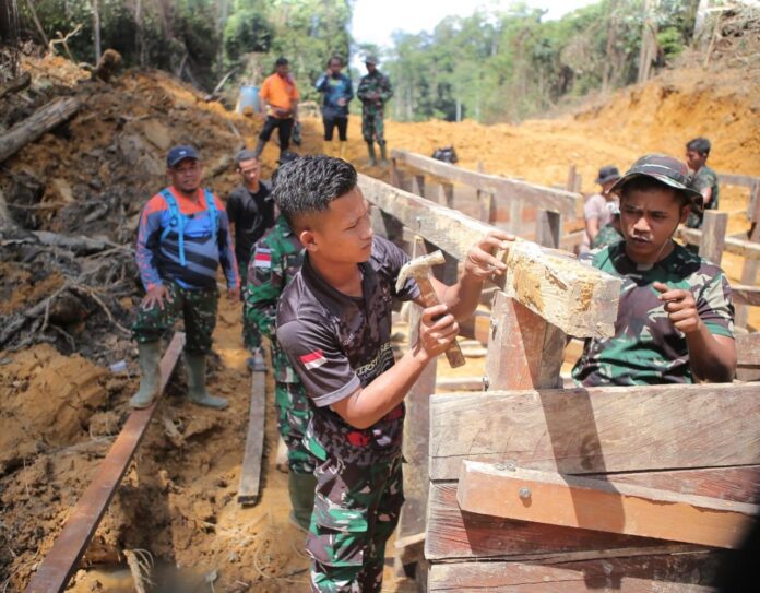 MALINAU – Satgas TNI Manunggal Membangun Desa (TMMD) Ke-125 Wiltas Kodim 0910/Malinau kembali melanjutkan komitmennya dalam membangun infrastruktur desa. Setelah menyelesaikan pembangunan jembatan pertama, kini Satgas TMMD mulai membangun jembatan ke-2 di Desa Tanjung Lapang, Kecamatan Malinau Barat, sebagai bagian dari upaya mewujudkan akses yang lebih merata bagi seluruh lapisan masyarakat, Minggu (03/8/2025).