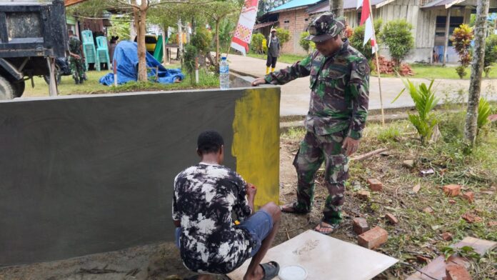 SORONG – Mendukung pola hidup bersih dan sehat Satgas TMMD melaksanakan Sasaran tambahan pembuatan bak sampah di program TMMD KE – 124 Kodim 1802/Sorong. Jumat (16/05/2025).