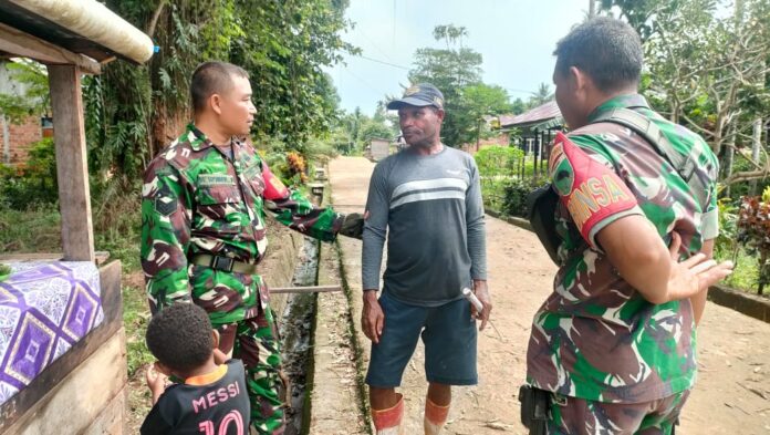 SORONG – Dalam rangka mendukung Program TNI Manunggal Membangun Desa (TMMD) ke-124 Kodim 1802/Sorong, Serka Khoirul Anam Babinsa Kampung Koramil 1802-03/Salawati melaksanakan Komunikasi Sosial (Komsos) dilokasi TNI Manunggal Membangun Desa (TMMD) ke-124 tepatnya di Kampung Yeflio Distrik Mayamuk Kabupaten Sorong Provinsi Papua Barat Daya. Rabu (07/05/2025).