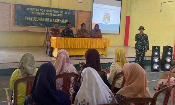 KotaMetro – Kegiatan penyuluhan KB Kesehatan dari Dinas Kesehatan Lampung Tengah (Lamteng) sukses digelar di lokasi TMMD Kampung Sukanegara, Kabupaten Lamteng. Acara tersebut dihadiri oleh berbagai pihak, di antaranya perwakilan Satgas TMMD Letda Inf Villayanto,S.P., M.S.I, Kadinkes yang diwakili Bapak Ambar, S.K.M, S.Kep, M.Kes, serta Kakam (Kepala Kampung) Sukanegara. Senin (28/07/2025)