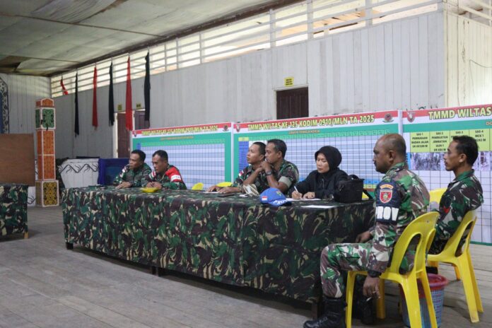 Malinau – Dalam rangka menyambut kunjungan Tim Pengawas dan Evaluasi (Wasev) dari Komando Atas, Satgas TNI Manunggal Membangun Desa (TMMD) Ke-125 Wilayah Perbatasan (Wiltas) Kodim 0910/Malinau menggelar rapat koordinasi yang berlangsung di Pos Kotis TMMD, Desa Tanjung Lapang, Kecamatan Malinau Barat, Kabupaten Malinau, Kamis (31/07/2025).