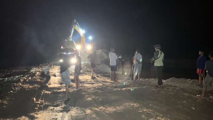 Meski malam hari Mereka rela mendatangi lokasi tersebut dan bahkan ada yang berbeda Desa hanya untuk menyaksikan Alat Berat yang sedang beroperasi.