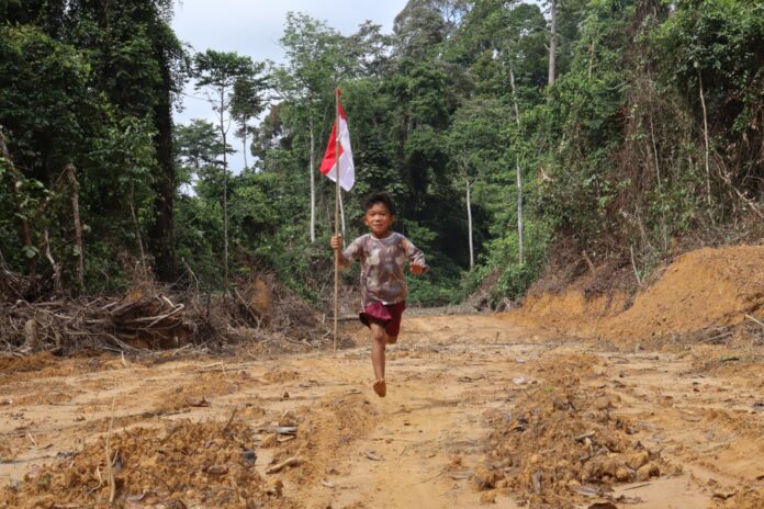 MALINAU, Kalimantan Utara,– Di tengah hijaunya hutan perbatasan, bertempat diDesa Tanjung Lapang, Kecamatan Malinau Barat, Kabupaten Malinau, Jum’at (15/8/2025), seorang bocah bernama Sakai berlari tanpa alas kaki di atas jalan tanah kuning yang baru saja terbuka. Di tangannya, Sang Saka Merah Putih berkibar gagah, mengikuti irama langkahnya yang penuh semangat. Senyum lepas di wajahnya adalah kisah sederhana namun bermakna besar: kemerdekaan kini terasa lebih dekat di Desa Tanjung Lapang.
