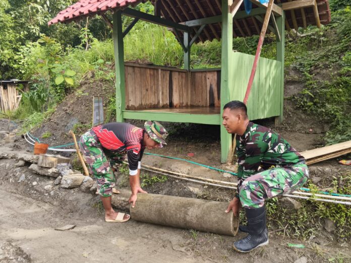 Di bawah terik yang bersahabat, prajurit dengan penuh ketelitian menggali, menyusun material, dan merapikan saluran air. Setiap ayunan cangkul dan susunan batu menjadi bukti nyata bahwa TMMD hadir tidak hanya membangun, tetapi juga menjaga denyut kehidupan masyarakat.