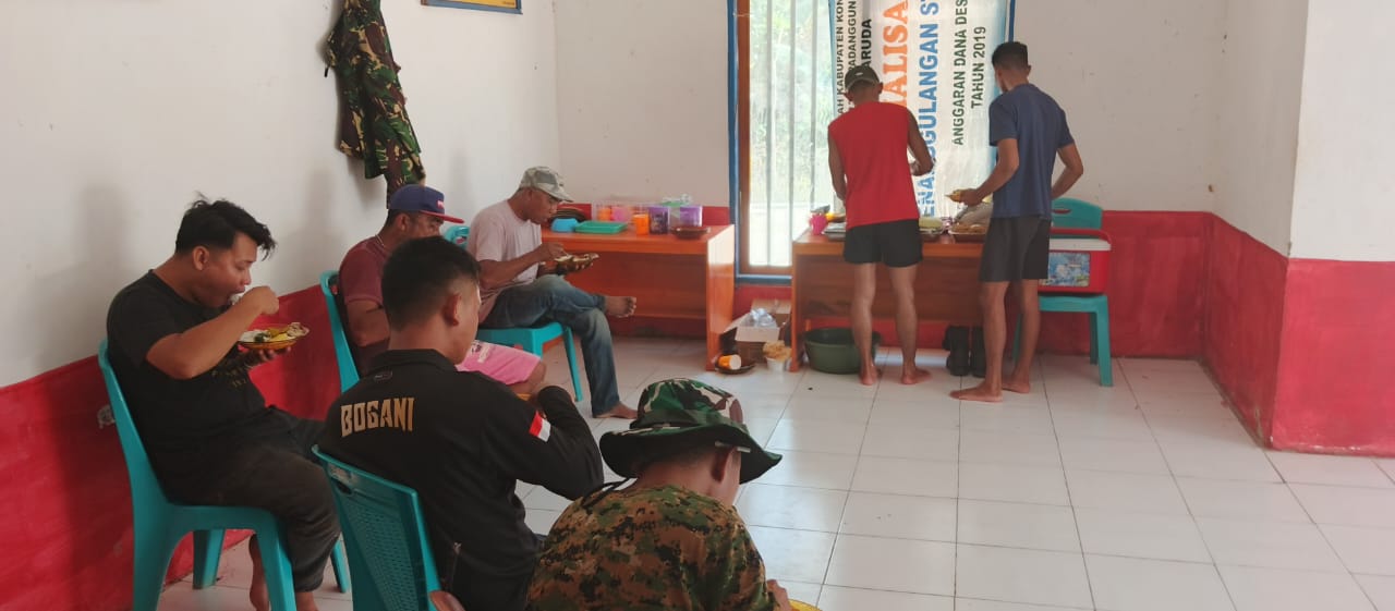 Konawe – Moment kehangatan terjadi di Pos Desa Garuda, Kecamatan Padangguni, Kabupaten Konawe, saat anggota Satgas TMMD 125 Kodim 1417/Kendari makan siang bersama masyarakat setempat. Kegiatan ini menjadi cerminan sinergi dan kemanunggalan antara TNI dan rakyat yang menjadi ruh dari Program TMMD.