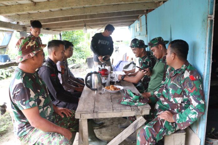 Jauh dari kesan formal dan kaku, para prajurit TNI melebur bersama warga sejak pagi hari. Di teras rumah warga, menikmati kopi hitam dan sepiring sarapan yang disiapkan dengan semangat gotong royong. Tidak ada seragam yang menciptakan jarak, tidak ada jabatan yang membuat canggung—yang ada hanyalah tawa, cerita ringan, dan rasa persaudaraan yang tumbuh begitu alami.