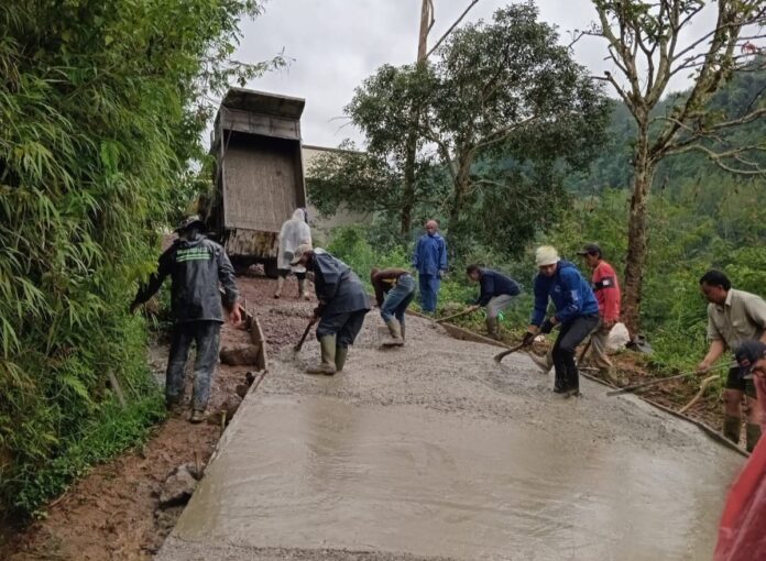 Bandung –Satgas TMMD Reguler ke-127 Kodim 0624/Kabupaten Bandung bersama masyarakat Desa Cipelah, Kecamatan Rancabali, melaksanakan kegiatan pengecoran jalan di titik 0-30, yang merupakan bagian dari pembangunan infrastruktur jalan sepanjang 1500 meter. Pekerjaan ini berlangsung mulai pukul 08.00 WIB dan berlangsung hingga selesai, dengan semangat kebersamaan yang tetap tinggi meskipun sedang menjalankan ibadah puasa di bulan Ramadan. Rabu (4/3).
