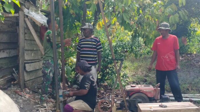 MIMIKA – Hari ketiga pelaksanaan TNI Manunggal Membangun Desa (TMMD) Reguler ke-124 Kodim 1710/Mimika, pembuatan sumur bor di wilayah setempat terus dikerjakan secara maksimal. Proyek ini merupakan salah satu sasaran fisik dalam program TMMD yang bertujuan untuk meningkatkan akses air bersih bagi masyarakat.