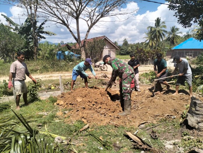 Konawe _ Anggota Satgas TMMD (Tentara Manunggal Membangun Desa) 125 Kodim 1417/Kendari bersama masyarakat melakukan penggalian septic tank MCK di titik ke empat (4), di Dusun II, Desa Nekudu, Kec. Asinua, Kab. Konawe, Rabu (30/7).