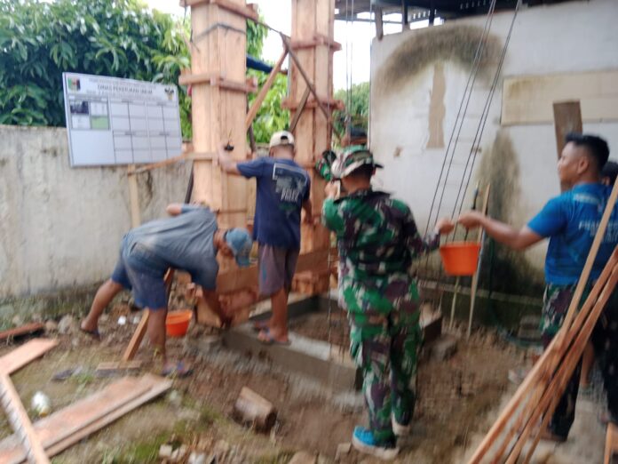LAMTIM – Usai sumur bor berhasil dibangun, kini Satgas TMMD ke-124 Kodim 0429/Lamtim bersama warga masyarakat kembali melanjutkan pengerjaan pembuatan tower penampungan air, berlokasi di Mushola Jamiatul Amin, Dusun 4, Desa Itik Rendai, Selasa (13/5/2025).