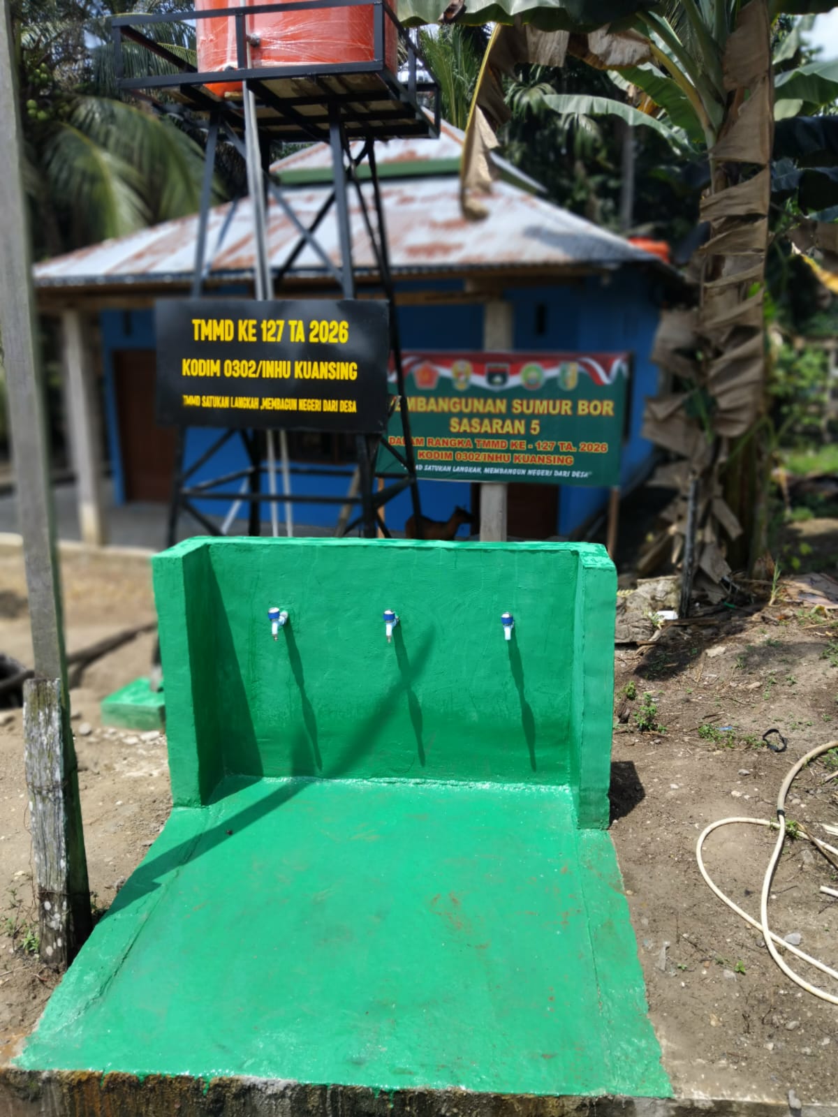 Kuantan Singingi – Pada hari Sabtu, 7 Maret 2026, pekerjaan pembangunan sumur bor di Mushala Nurul Akif, Dusun 3, Desa Perhentian Luas, Kecamatan Logas Tanah Darat, Kabupaten Kuantan Singingi, telah selesai dilakukan secara penuh. Pekerjaan finishing yang dilakukan hari ini menandai selesainya proses pembangunan sumur bor yang menjadi bagian dari program TMMD ke-127 Tahun 2026.