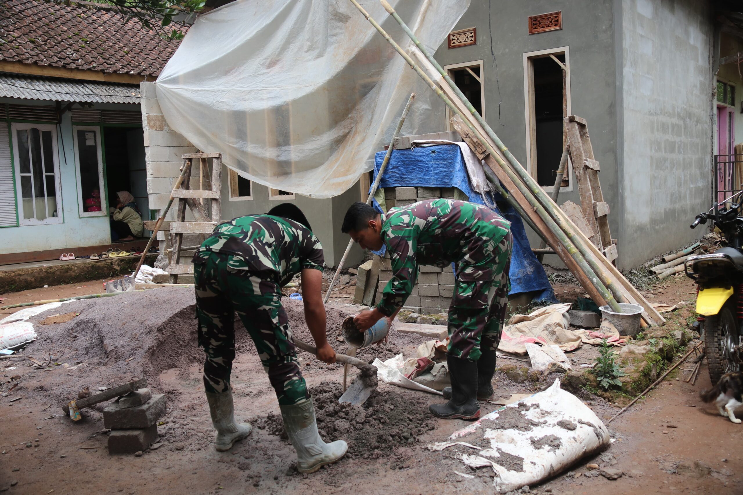 DESA CIPELAH, KECAMATAN RANCABALI, KABUPATEN BANDUNG – Pada hari Rabu (25/2/2026) pukul 08.00 WIB hingga selesai, anggota Satgas TMMD bersama masyarakat Desa Cipelah melaksanakan kegiatan pembangunan Rumah Tidak Layak Huni (RTLH) milik Ibu Lis yang bertempat di Kampung Babakan Garut RT 03 RW 03. Kegiatan ini merupakan bagian dari Program TMMD Reguler ke-127 Tahun 2026 yang diselenggarakan oleh Kodim 0624/Kabupaten Bandung.