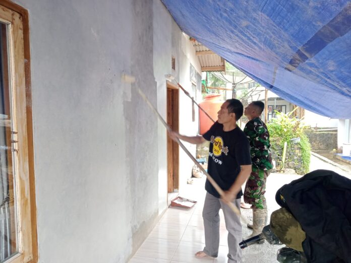 Kab. Bandung –Kegiatan Sasaran fisik dalam rangka pelaksanaan TMMD Reguler ke-127 Tahun 2026 oleh Kodim 0624/Kabupaten Bandung menunjukkan progres yang sangat menggembirakan. Bertempat di rumah Bapak Maman di Kampung Sundamekar RT.02 RW.12, Desa Cipelah, Kecamatan Rancabali, anggota Satgas TMMD bersama masyarakat setempat melaksanakan proses finishing pengecatan dinding rumah yang merupakan bagian dari program bedah rumah (RTLH). Sabtu (7/3).
