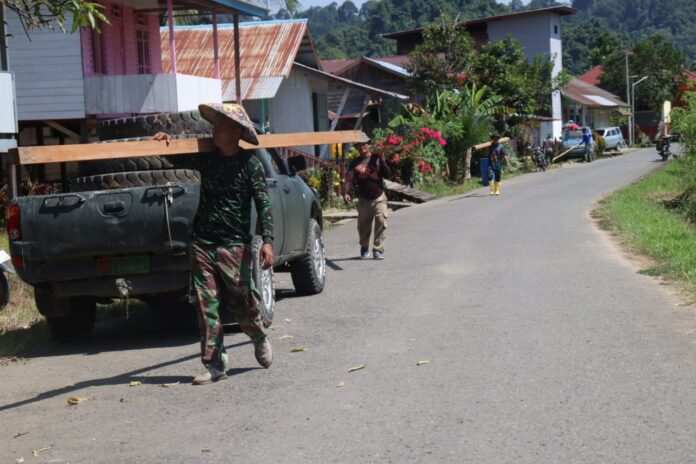 MALINAU – Tak kenal lelah, setiap prajurit TNI ketika menerima penugasan dan kemudian berada di daerah penugasan, selalu dituntut tegar, kuat dan bisa membaca situasi serta mampu bertahan dalam keadaan apapun. Hal ini dipersiapkan ketika diterjunkan ditengah masyarakat untuk membantu kesulitan yang dialami oleh masyarakat.