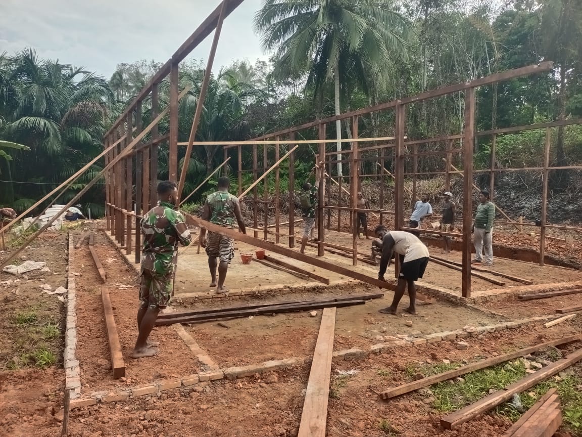 Mappi, – Pembangunan rumah layak huni (RTLH) milik Bapak Fransiskus Saferius Abohoy di Kampung Yibin, Distrik Venaha, Kabupaten Mappi, Provinsi Papua Selatan, terus berlanjut sebagai bagian dari program TMMD (TNI Manunggal Membangun Desa) ke-127. Pada hari ke-9 pelaksanaan TMMD, Rabu, 18 Februari 2026, Satgas TMMD Kodim 1704/Mappi bersama warga setempat fokus pada pendirian rangka rumah dan pengecoran septic tank.
