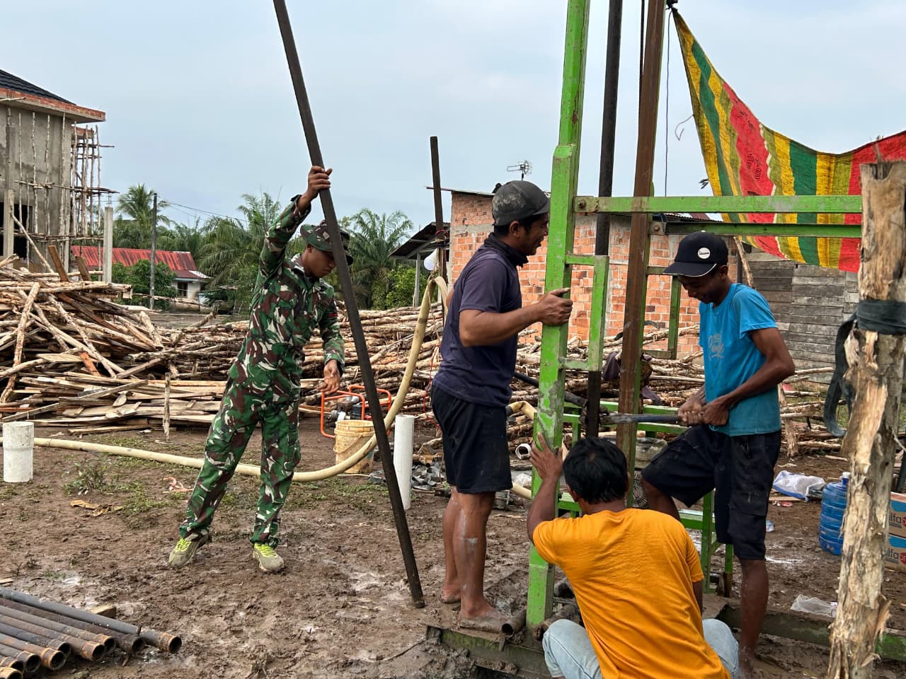 Dengan penuh semangat, anggota Satgas TMMD dan masyarakat bekerja sama dalam setiap tahapan pembangunan sumur bor, mulai dari pengeboran, pemasangan pipa, hingga penyelesaian konstruksi.