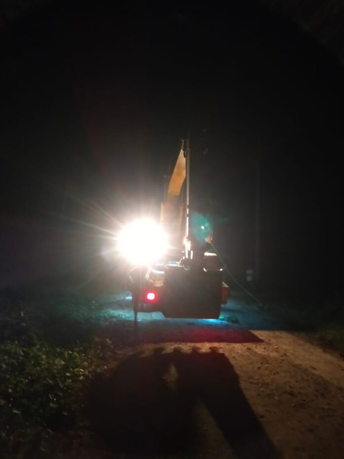 Konawe _ Pada malam minggu 2 Agustus, anggota Satgas TMMD 125 Kodim 1417/Kendari menurunkan alat berat Excavator dalam rangka pengerjaan jalan, di Desa Asipako, Kec. Asinua, Kab. Konawe. Minggu (3/8).