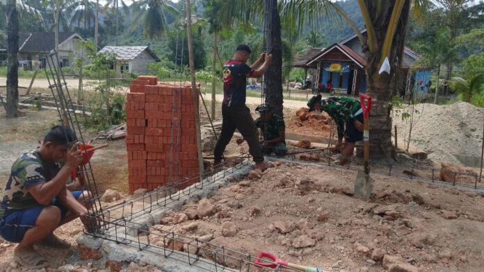 Konawe – Anggota Satgas TMMD 125 Kodim 1417/Kendari bersama masyarakat melakukan pembangunan fasilitas MCK (Mandi, Cuci, Kakus) dengan mendirikan besi slop, di Desa Nekudu, Kec. Asinua, Kab. Konawe, Senin (28/7).