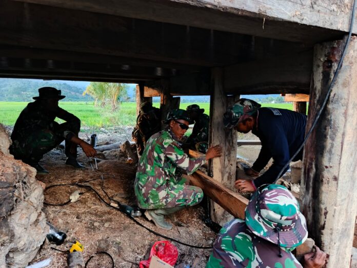 “Tidak hanya sekedar merehab saja, namun kami juga mengutamakan kualitas bangunan dan jangka panjang demi kenyamanan masyarakat Desa,” ujar Sertu Munapri salah satu anggota Satgas TMMD.