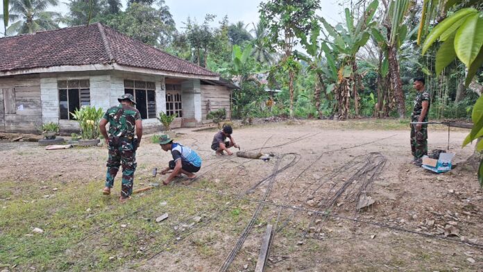 Konawe – Anggota TMMD 125 Kodim 1417/Kendari, terlihat terampil kan kemahiran dalam memerankan berbagai peran terutama saat ini merangkai besi untuk pembangunan MCK umum, di Desa Nekudu, Kec. Asinua, Kab. Konawe, Minggu (27/7).