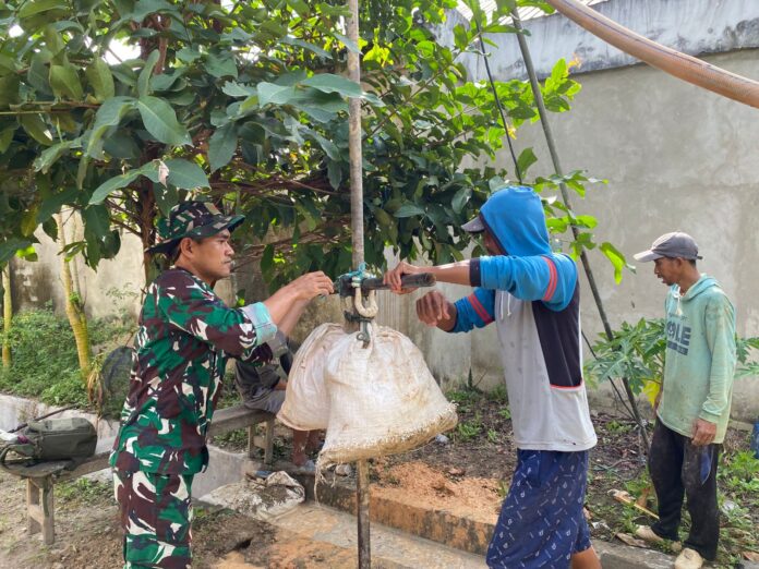 Dengan antusias, personil satgas TMMD dibantu masyarakat setempat bersama-sama dalam penggalian Sumur Bor, karena kebutuhan air bersih ini sangat penting bagi masyarakat.