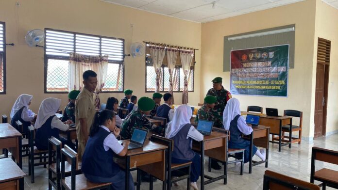 BANYUASIN – Anggota Satuan Tugas (Satgas) TNI Manunggal Membangun Desa (TMMD) ke-127 melaksanakan kegiatan pendidikan berupa pelatihan komputer dan pemberian buku melalui perpustakaan sekolah. Kegiatan ini bertempat di SMPN 3 Pulau Rimau, Desa Wonosari, Kecamatan Pulau Rimau, Kabupaten Banyuasin.