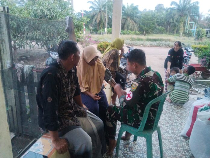 BANYUASIN – Anggota Satuan Tugas (Satgas) TNI Manunggal Membangun Desa (TMMD) ke-127 melalui tim kesehatan melaksanakan pengecekan kesehatan secara door-to-door kepada warga Desa Wonosari. Kegiatan ini bertujuan untuk meningkatkan pelayanan kesehatan dan mendekatkan diri dengan masyarakat.