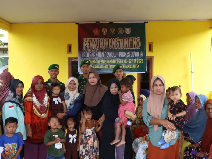 BANYUASIN – Sebagai bagian dari program nonfisik TNI Manunggal Membangun Desa (TMMD) ke-127, anggota Satuan Tugas (Satgas) TMMD 127 Kodim 0430/Banyuasin (BA) melaksanakan penyuluhan mengenai stunting pada anak dan protokol kesehatan (prokes) Covid-19 kepada masyarakat Desa Wonosari. Kegiatan ini bertujuan untuk meningkatkan pemahaman masyarakat mengenai pentingnya pencegahan stunting dan penerapan prokes Covid-19 dalam kehidupan sehari-hari.