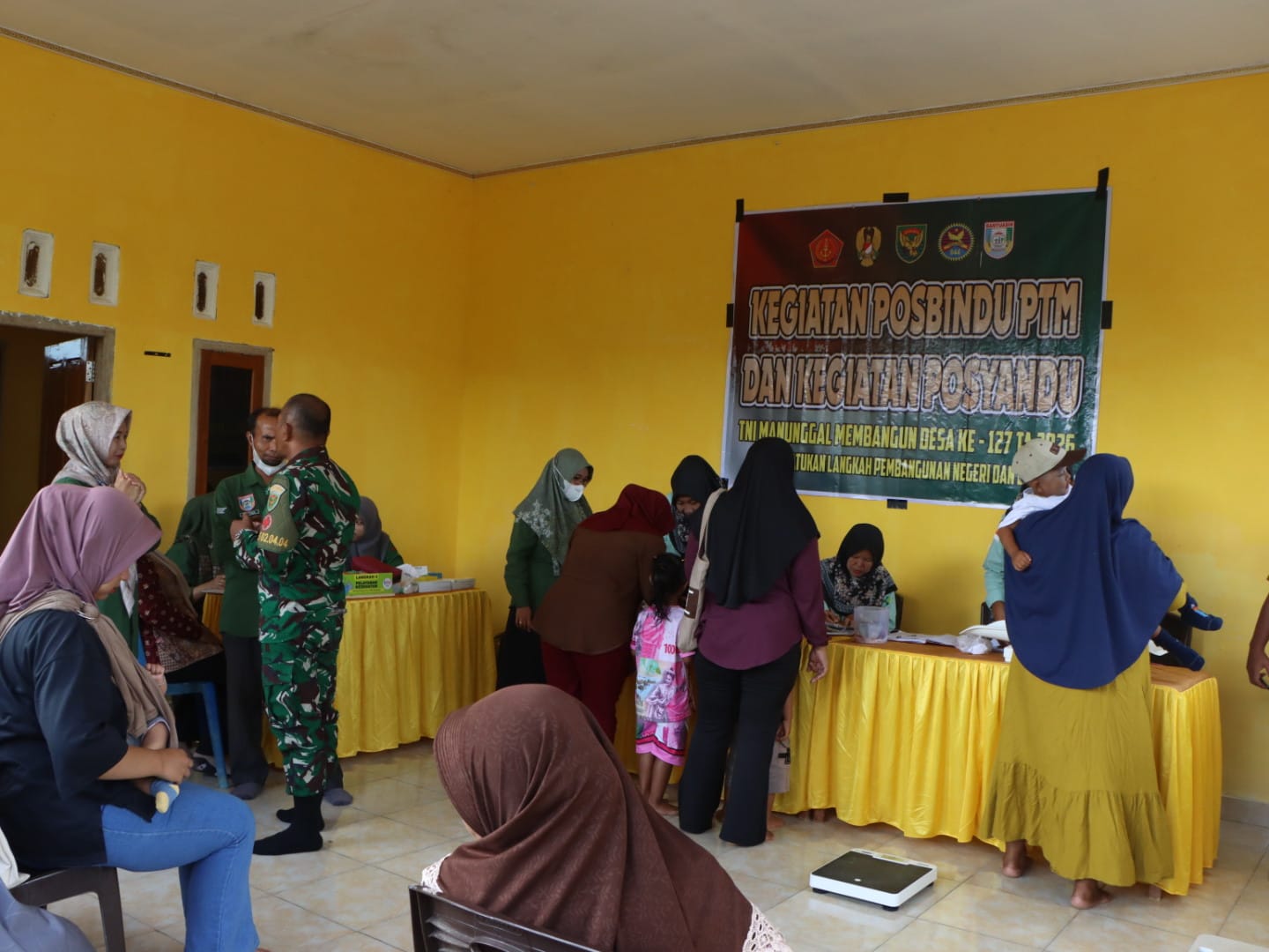 BANYUASIN – Sebagai bagian dari sasaran nonfisik program TNI Manunggal Membangun Desa (TMMD) ke-127, anggota Satuan Tugas (Satgas) TMMD 127 Kodim 0430/Banyuasin (BA) melaksanakan kegiatan Pos Pembinaan Terpadu Penyakit Tidak Menular (Posbindu PTM) dan Pos Pelayanan Terpadu (Posyandu) di titik sasaran TMMD. Kegiatan ini bertujuan untuk meningkatkan kesehatan dan kesejahteraan masyarakat, khususnya dalam pencegahan dan pengendalian penyakit tidak menular serta pelayanan kesehatan ibu dan anak.