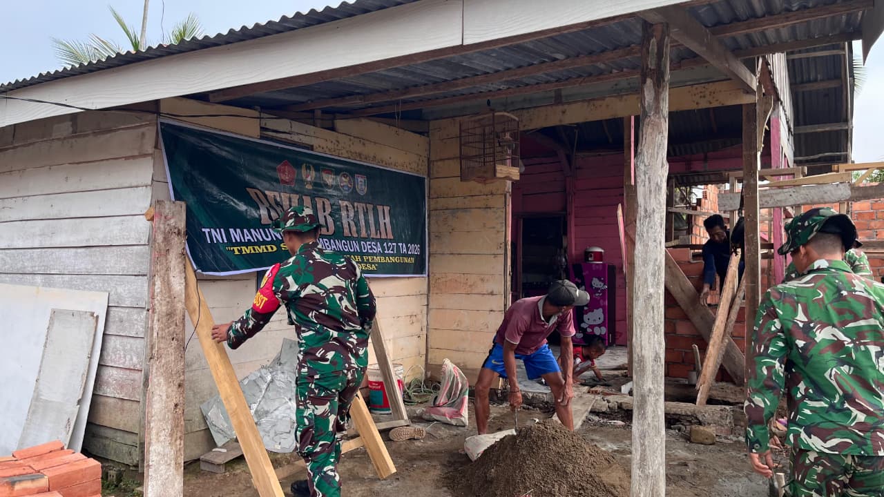 Banyuasin – Satuan Tugas (Satgas) TNI Manunggal Membangun Desa (TMMD) ke-127 bersama masyarakat Desa Wonosari terus memacu pengerjaan rehabilitasi Rumah Tidak Layak Huni (RTLH) milik Bapak Paiman. Saat ini, fokus utama adalah pemasangan kusen pintu dan jendela, sebagai bagian penting dalam mewujudkan rumah yang layak huni.