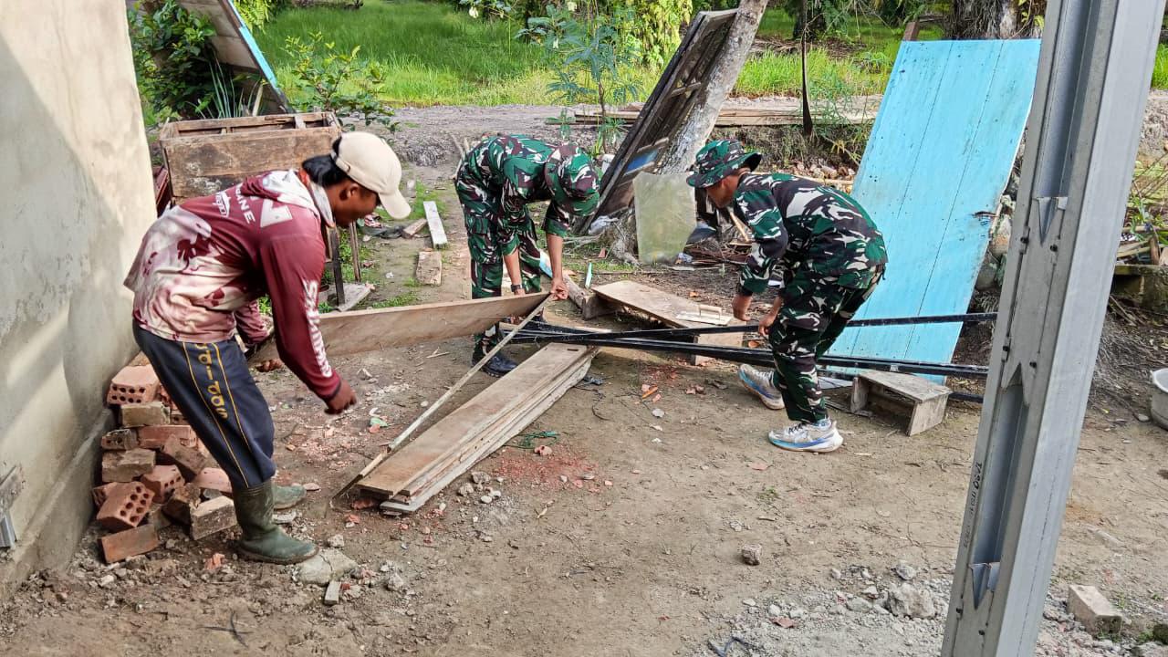 Dengan semangat gotong royong, anggota Satgas TMMD dan masyarakat bahu-membahu menyelesaikan berbagai pekerjaan, mulai dari pemasangan dinding, atap, lantai, hingga plesteran dan pengecatan.
