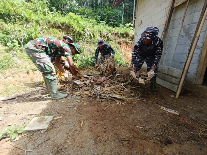 Satgas TMMD Bersihkan Sisa Material RTLH, Lingkungan Rumah Warga Kembali Rapi