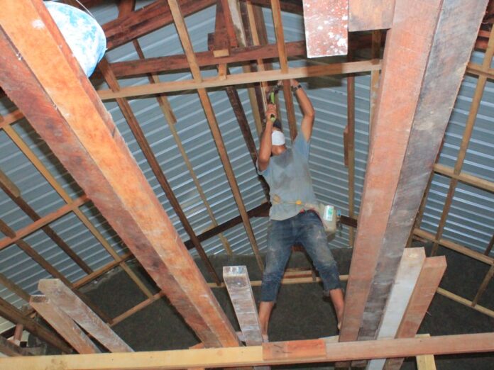 SARMI – Satuan Tugas (Satgas) TNI Manunggal Membangun Desara (TMMD) ke-123 Kodim 1712/Sarmi terus melanjutkan pembangunan dengan memasuki tahap pemasangan rangka plafon pada gereja di Kampung Podena, Distrik Bongsor, Kabupaten Sarmi, Papua. Kamis (6/3/2025).