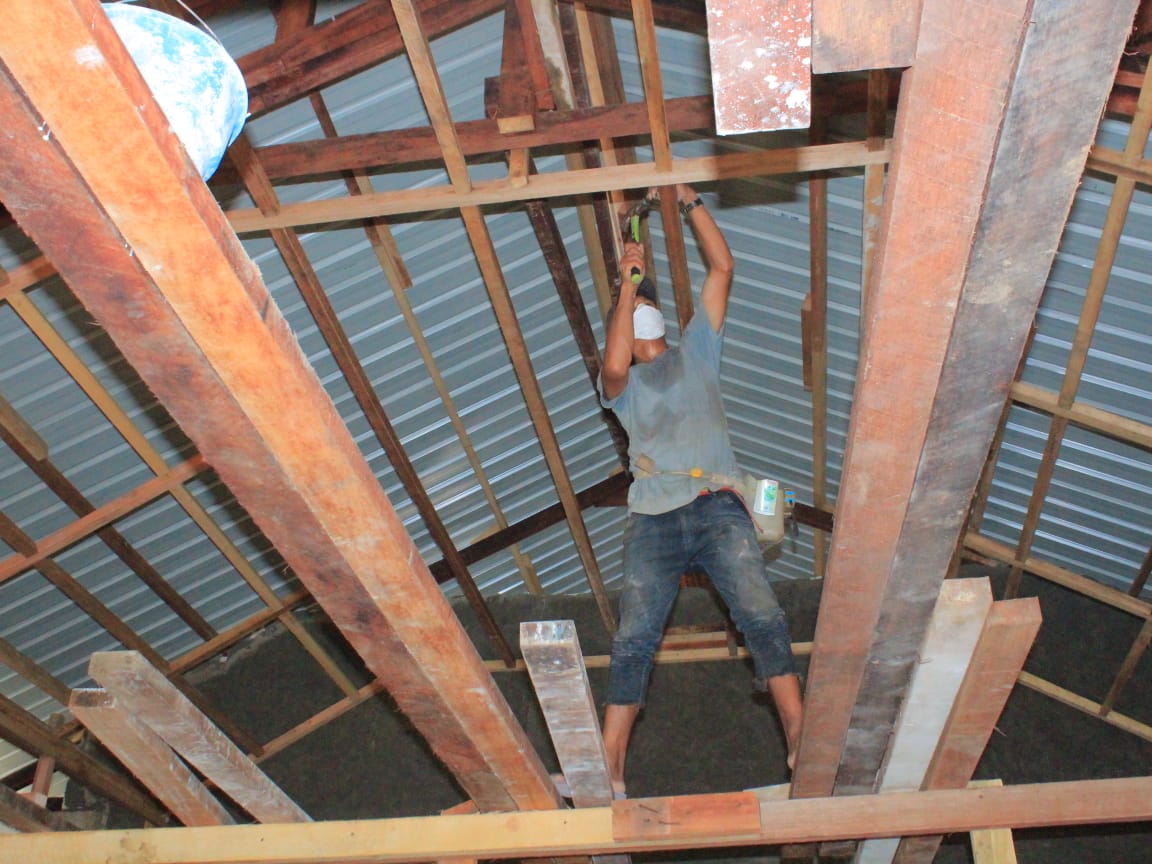 Pemasangan rangka plafon pada gereja ini dilakukan oleh personel Satgas TMMD ke-123 Kodim 1712/Sarmi dengan bantuan dari masyarakat setempat. Kegiatan ini diharapkan dapat selesai dalam waktu yang singkat dan dapat memberikan manfaat yang besar bagi masyarakat Kampung Podena.