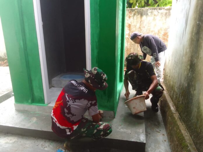 Sertu Irvan Muali anggota Satgas menuturkan, saat ini pembangunan MCK sudah sampai tahap finishing.