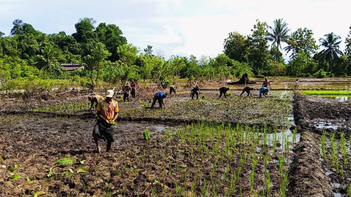 Hasil dari lapangan dari Pasiter Kodim 1802/Sorong Kapten Inf Suyatno bahwa anggota satgas TMMD KE – 124 bersama masyarakat dan petani terus bekerja sama dari tahap pematangan lahan hingga sampai saat ini penanaman bibit padi dilahan ketahanan pangan seluas 2 Ha. “Terlihat aktif bersama petani dan masyarakat menanam padi mereka membantu proses tanam padi” terang Pasiter.