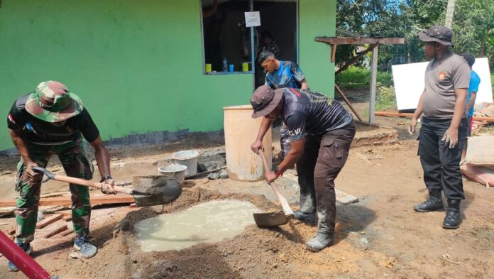 SORONG – Kekompakan dan kerja sama antara TNI, Polri, dan masyarakat terlihat jelas dalam pengerjaan sasaran fisik perehaban 8 unit rumah tidak layak huni (RTLH) di Kampung Yeflio, Distrik Mayamuk, Kabupaten Sorong, Provinsi Papua Barat Daya. Minggu (11/05/2025), Satgas TMMD Ke-124 Kodim 1802/Sorong bersama masyarakat bahu-membahu mengerjakan sasaran fisik program TMMD, termasuk perehaban RTLH, pembangunan bak sampah, dan perehaban gapura rumah ibadah gereja.