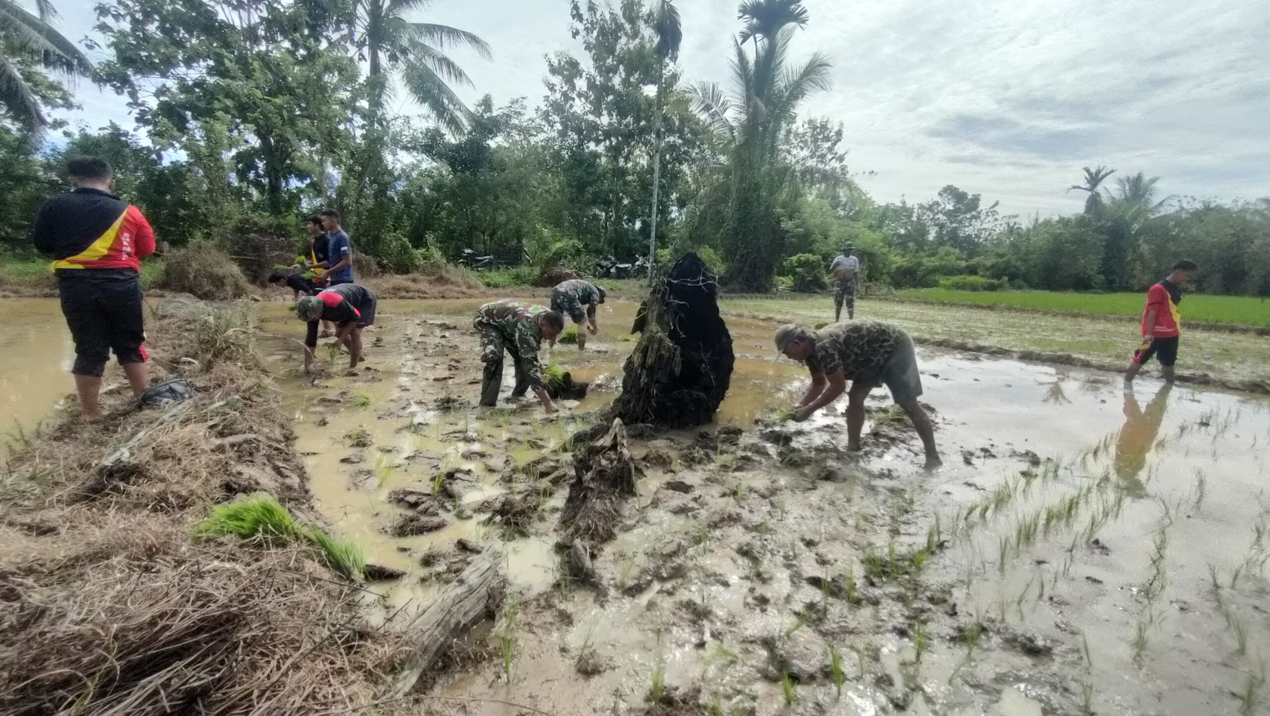 Sorong – Guna mendukung Program TNI Manunggal Membangun Desa (TMMD) ke-124 Kodim 1802/Sorong, Pasiter Kodim 1802/Sorong Kapten Inf Suyatno bersama Anggota Satgas TMMD Ke – 124 dan masyarakat melaksanakan pematangan lahan tanam dan penanaman bibit padi di lahan ketahanan pangan progam TMMD Ke – 124 dengan luas 50 HA. Bertempat Kampung Yeflio Distrik Mayamuk Kabupaten Sorong Provinsi Papua Barat Daya. Jumat ( 08/05/2025)